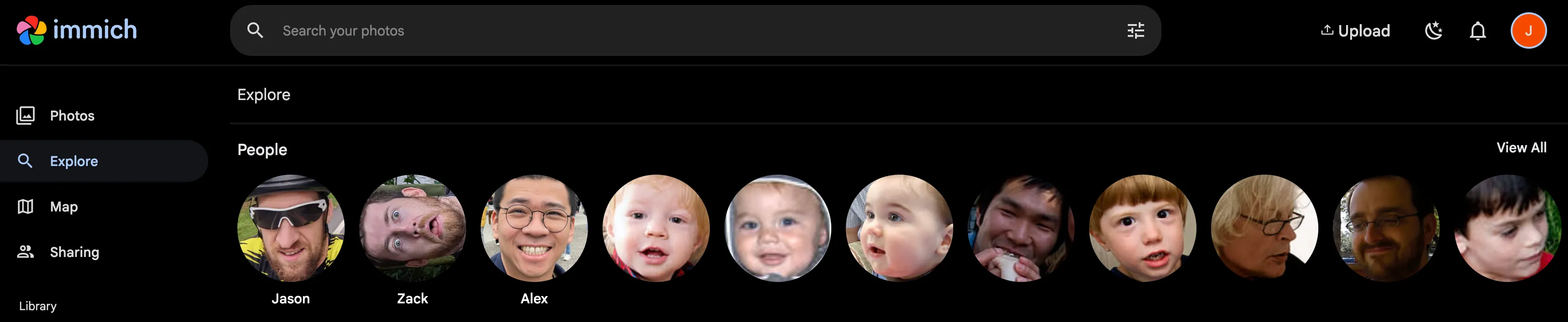 Immich recognizes faces in your photos and videos and groups them together into people. You can then assign names to these people and search for them.