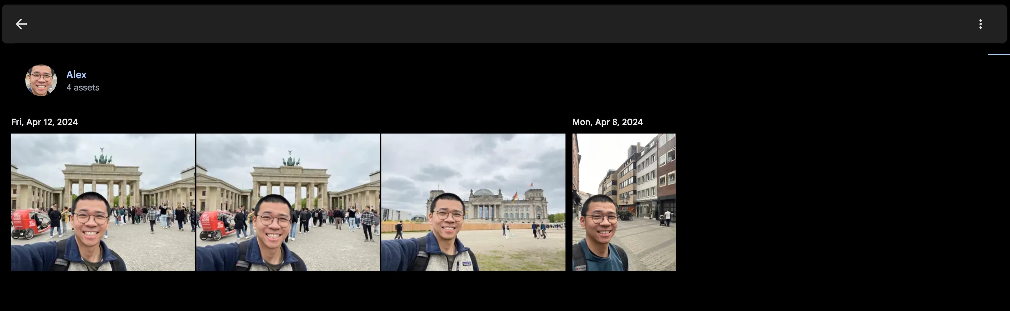 Upon clicking on a person, a list of assets that contain their face will be shown.