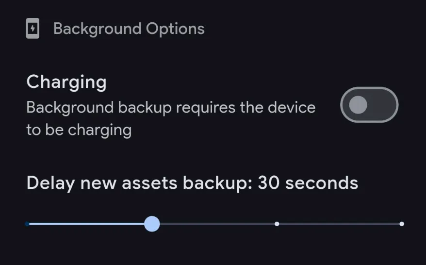 - You can set the minimum delay from the time a photo is taken to when the background upload task will run.