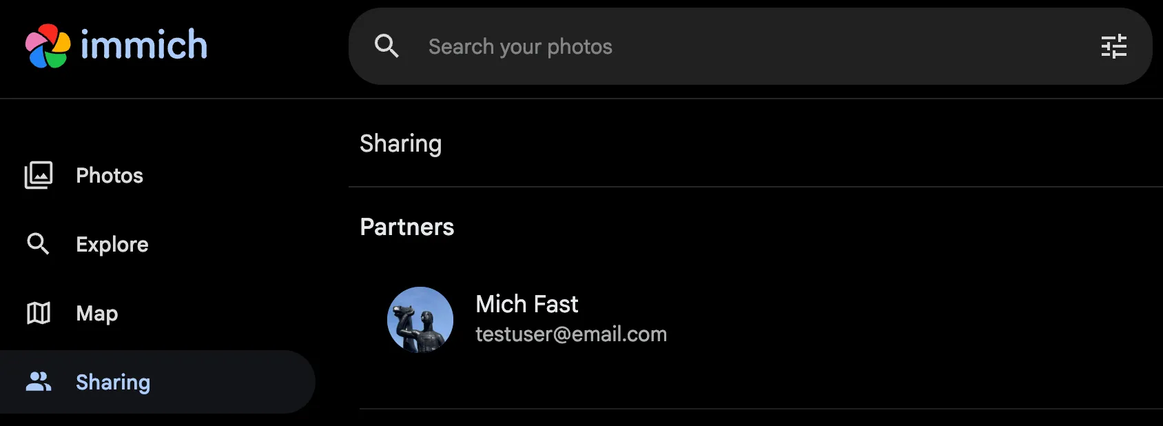 Immich allows you to share your library with other users. They can then view your library and download the assets. You can manage Partner Sharing from the User Settings page on the web.