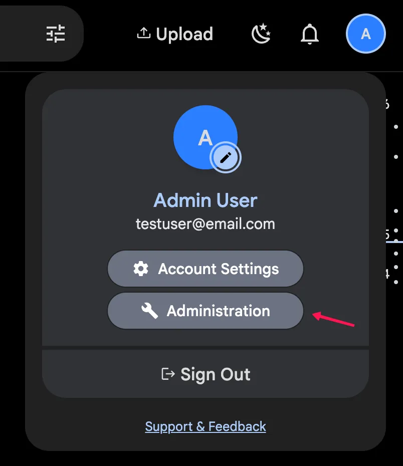 click the Administration link in the upper right corner.